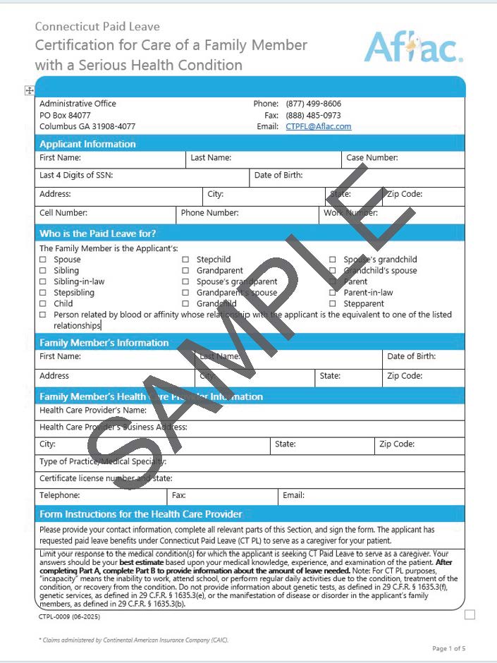 Your Notice of Application will include the required documents, many of which are pre-filled with your name and case number. If you lost these forms, log into the CT Paid Leave Aflac Portal to download your Notice of Application with the pre-filled forms.